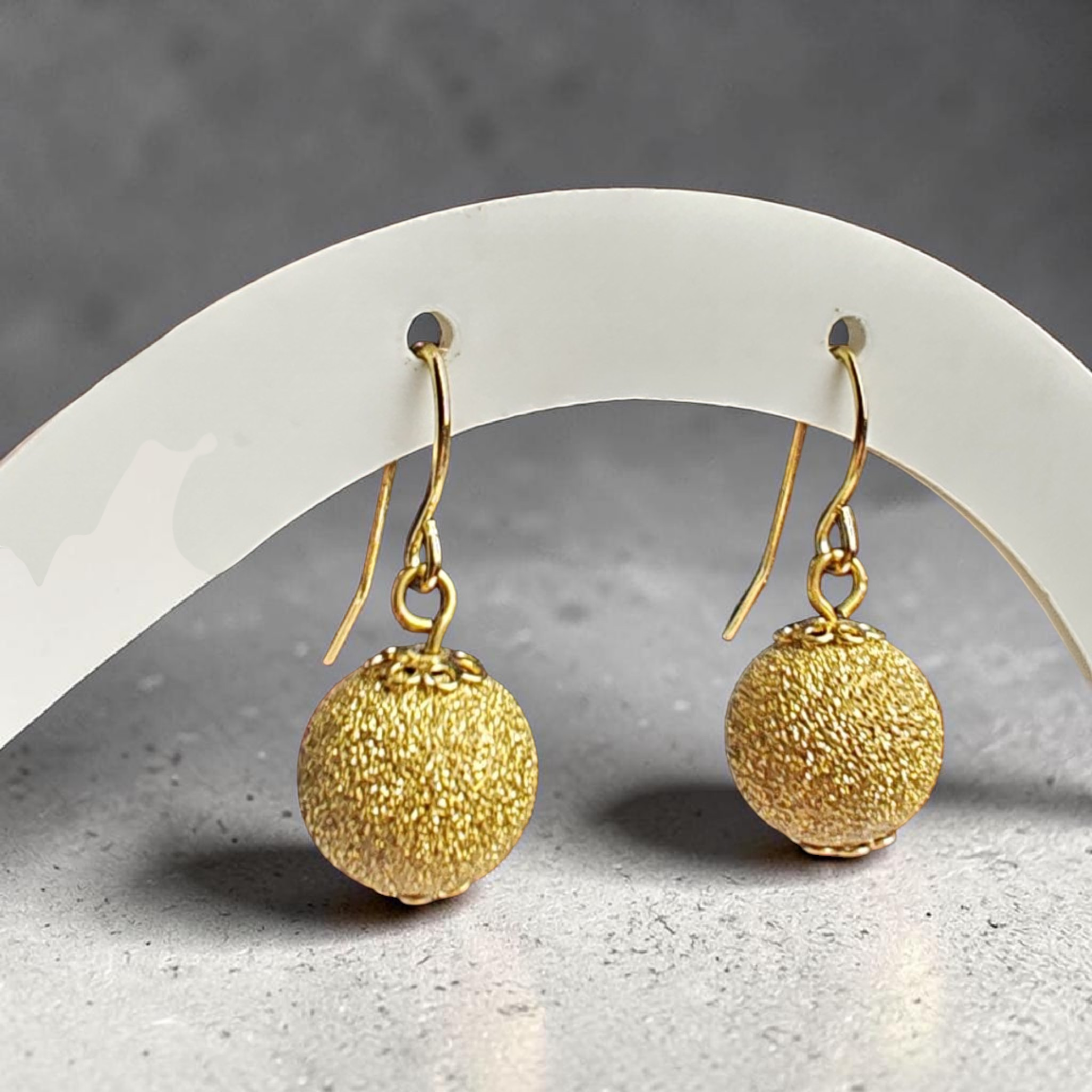 ✨ Elegáns, arany színű gömb fülbevaló finoman texturált felülettel.