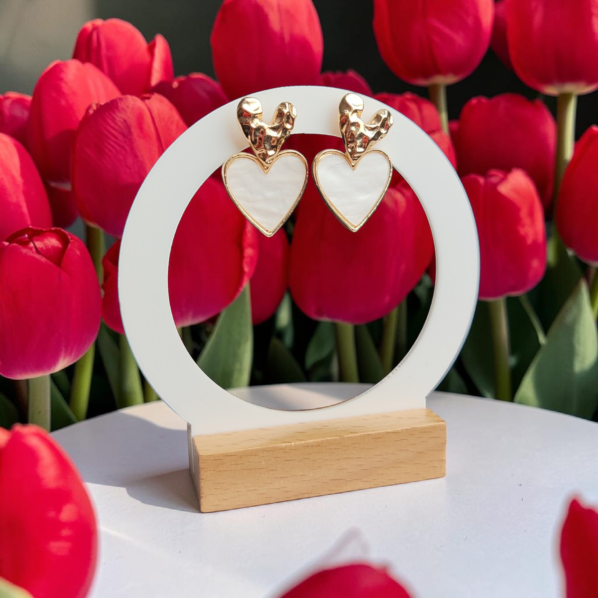 💛 Romantikus, szív alakú fülbevaló aranyszínű kerettel.