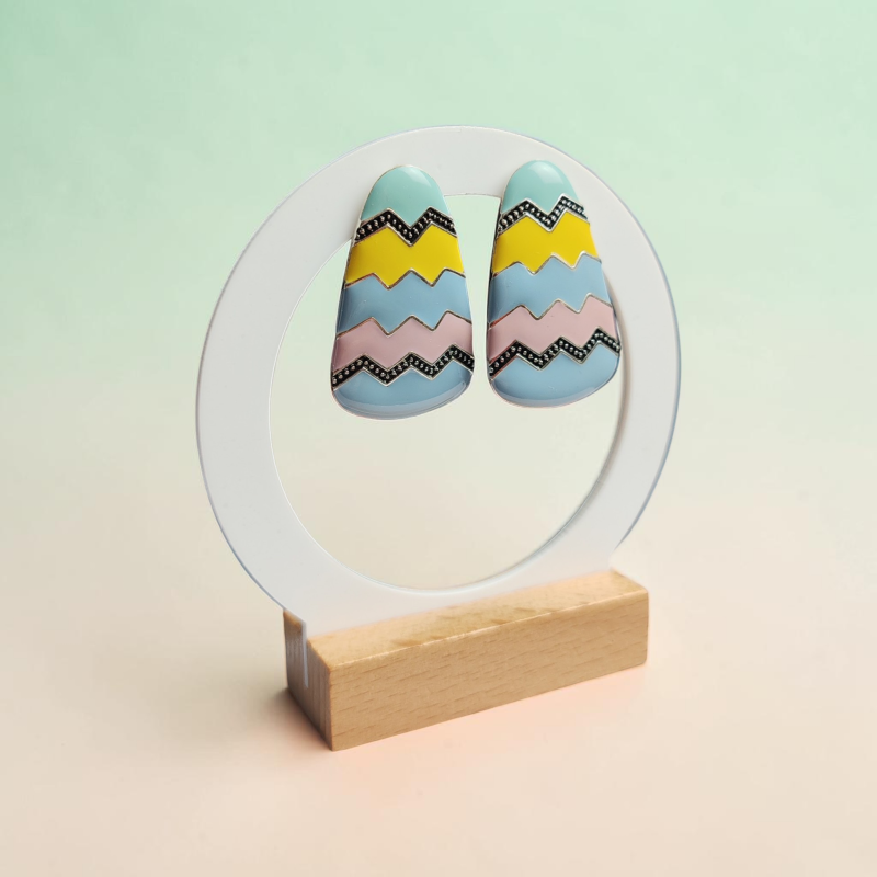🎨 Színes cikk-cakk mintás fülbevaló ezüstszínű kivitelben.