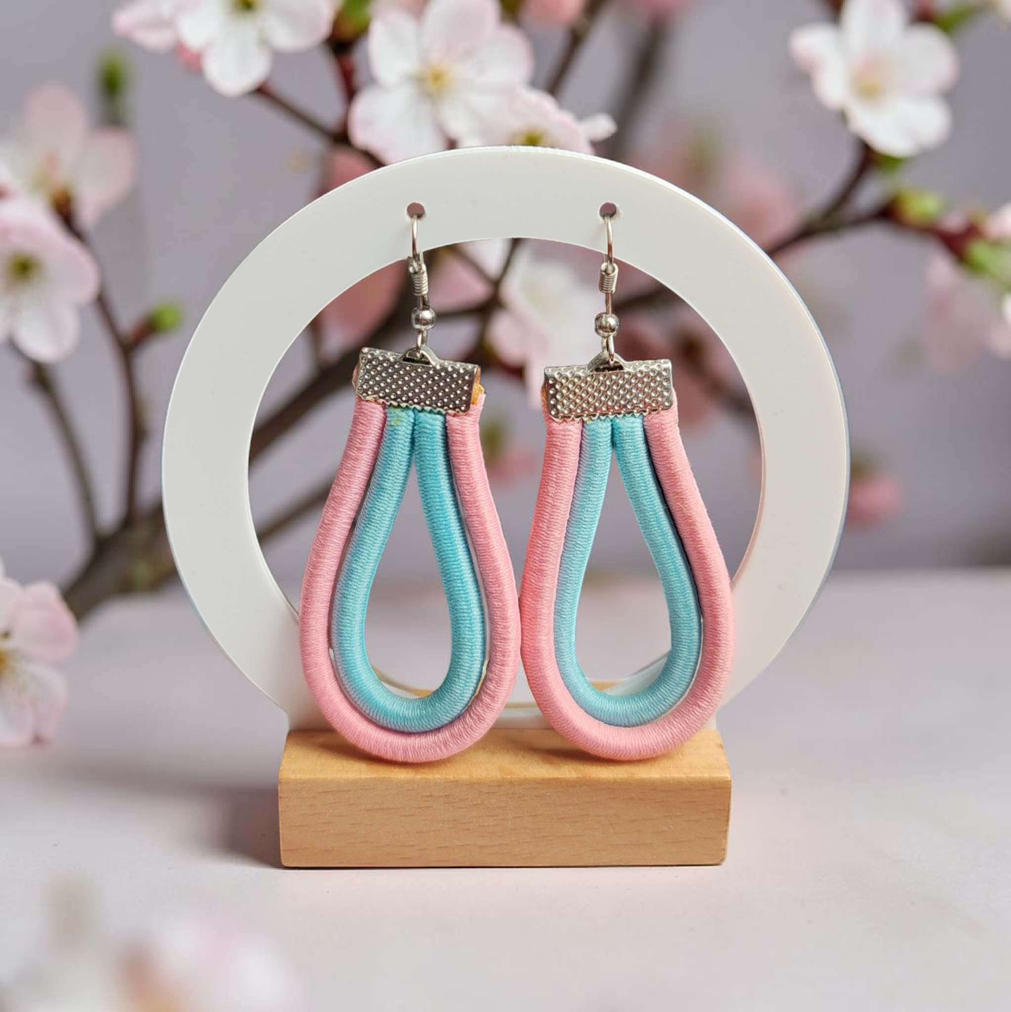 Ezüst színű alapú pasztell gumi lógós fülbevaló