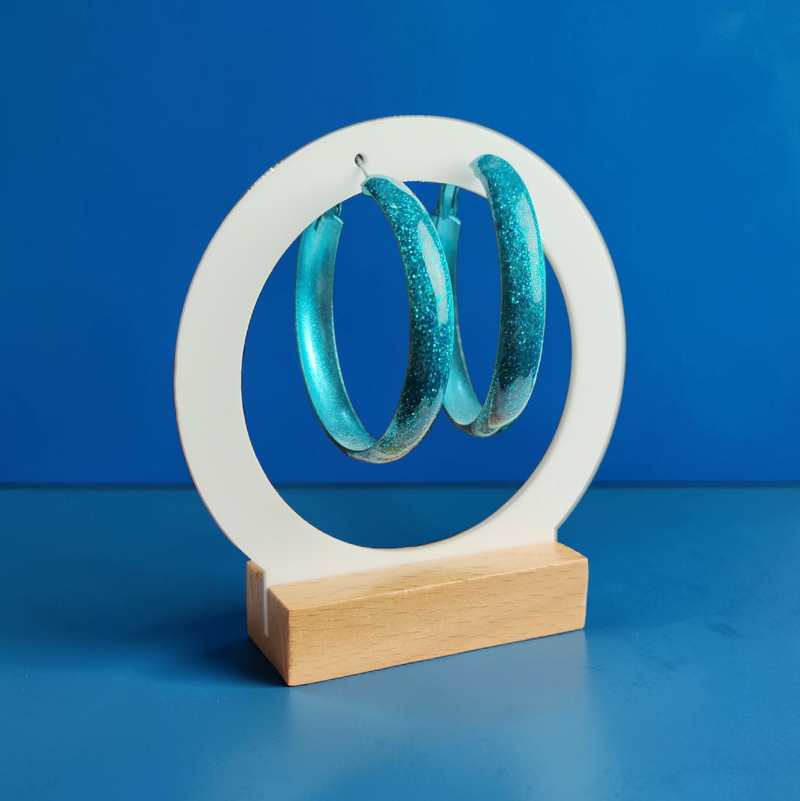 ✨ Kék csillámporos karika fülbevaló látványos fényjátékkal.