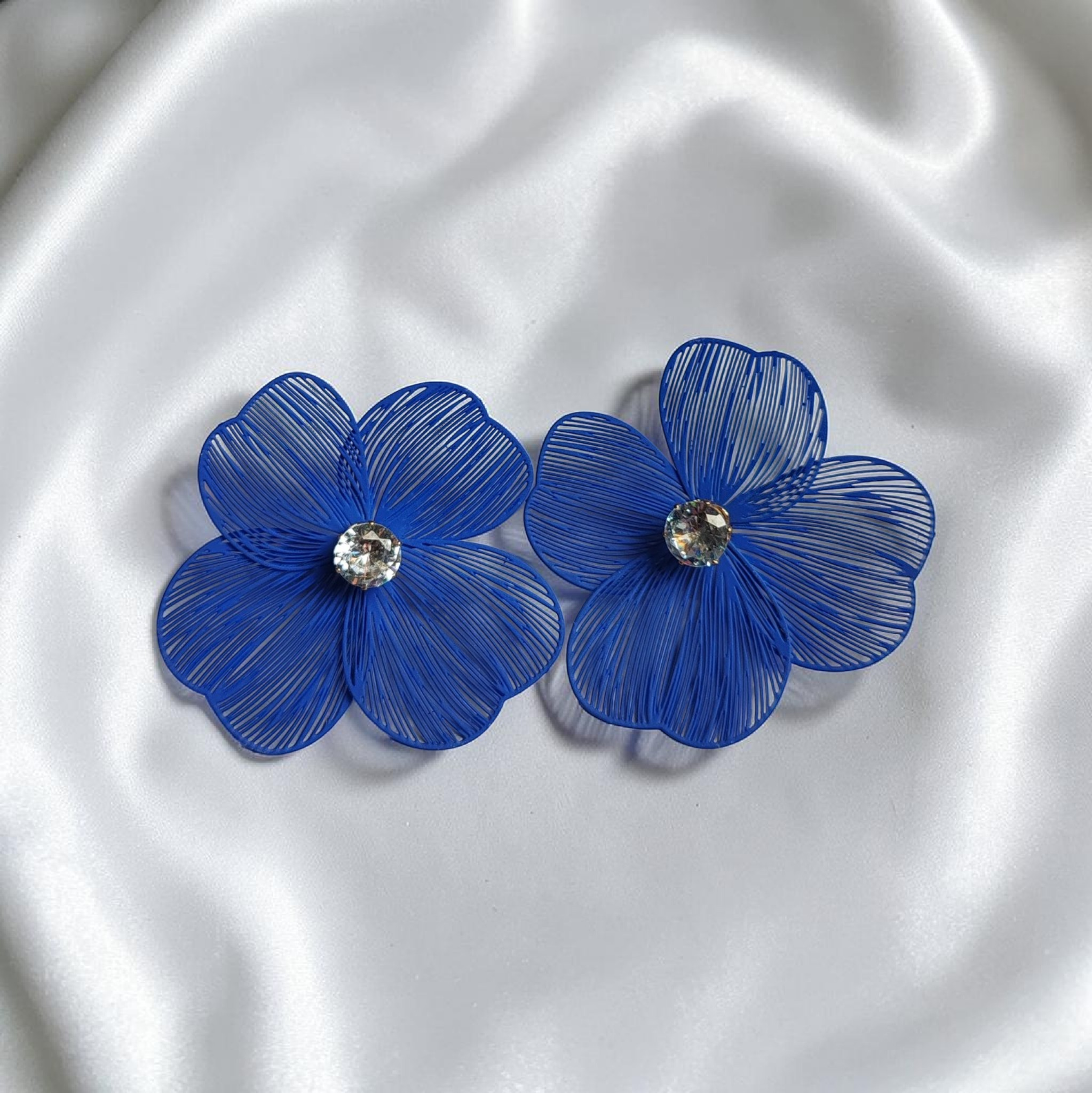 🔵 Kék virág fülbevaló csillogó kristály középpel.