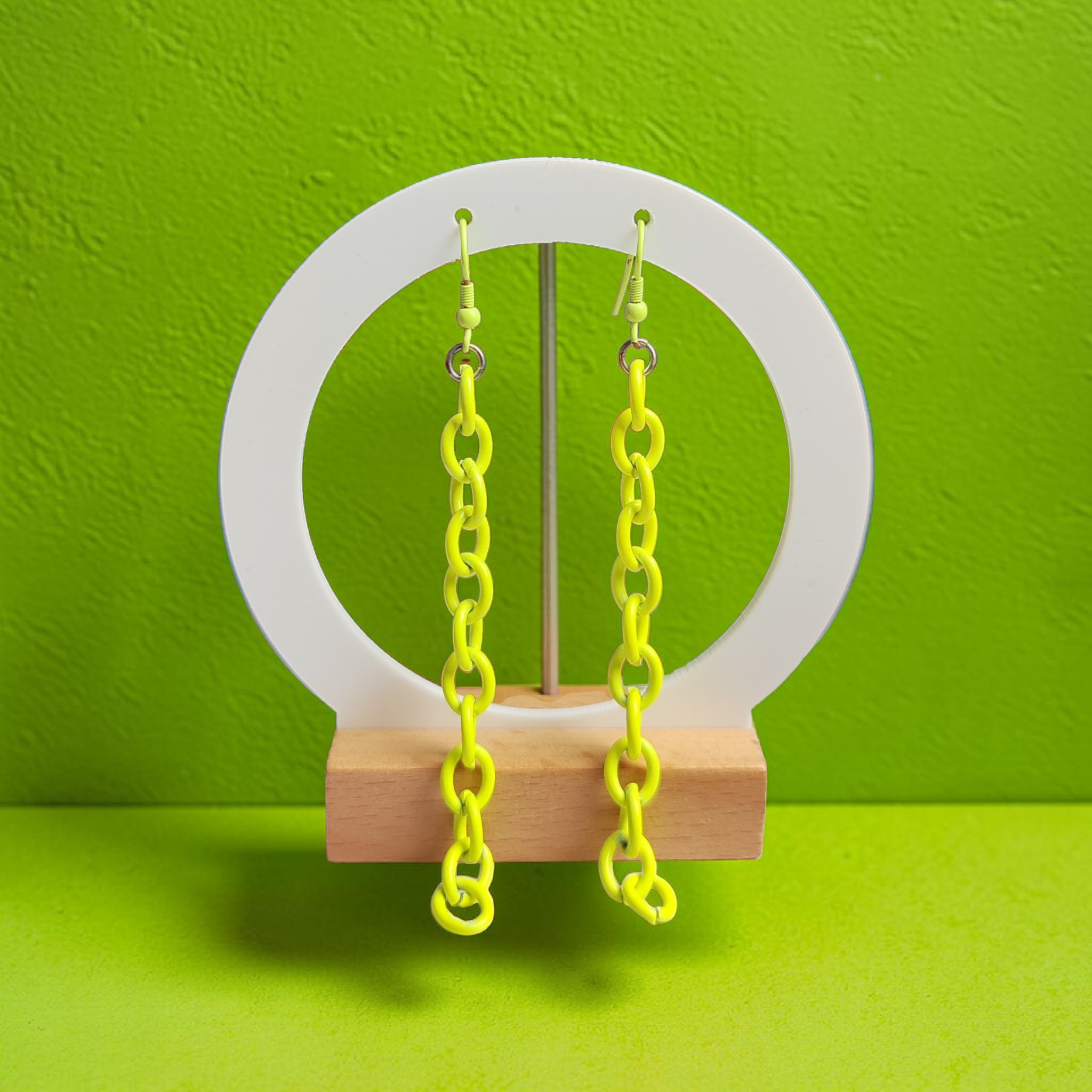 🟢 Feltűnő, neonzöld láncos fülbevaló, vagány és trendi megjelenéshez.