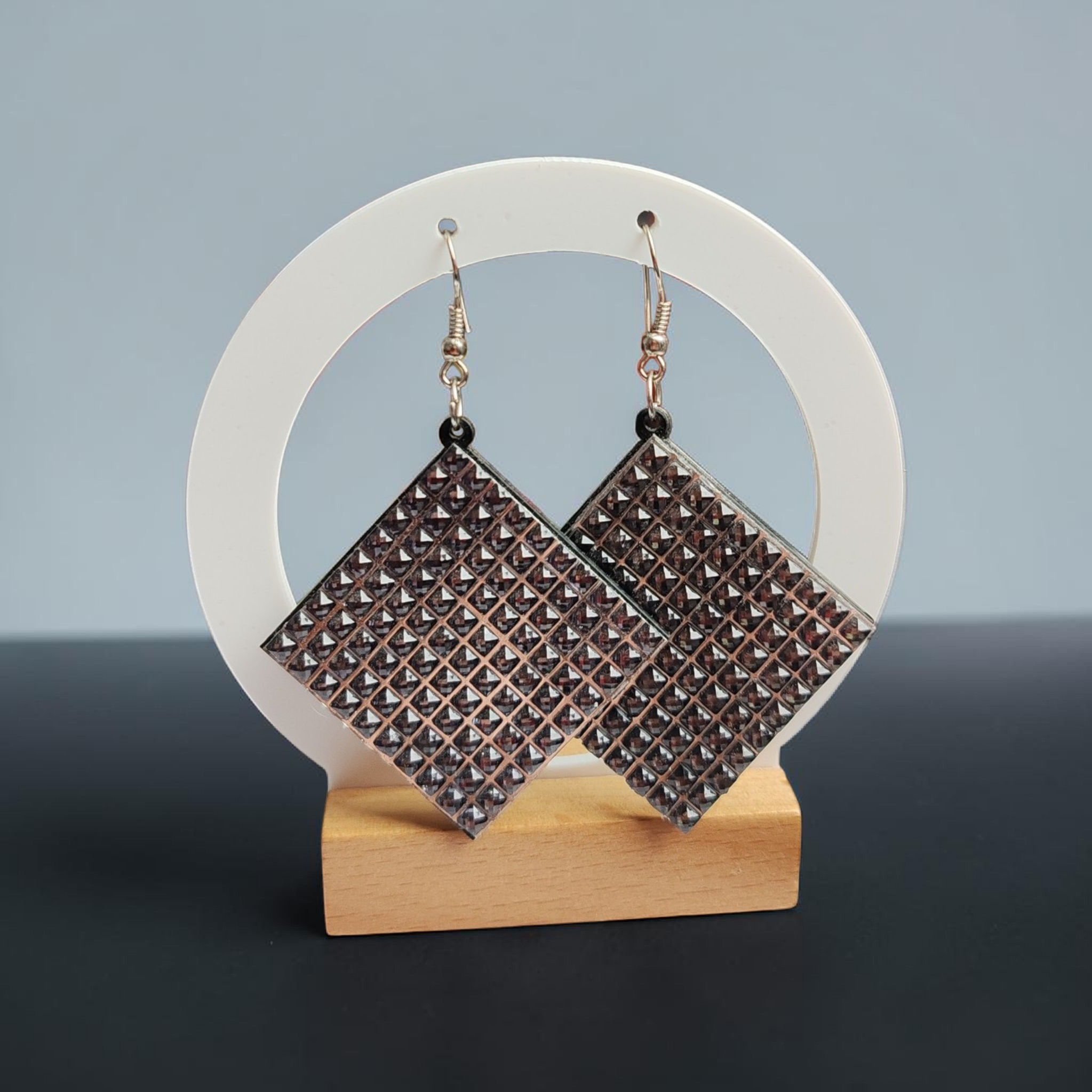 ⚙️ Geometrikus, rács mintás rombusz fülbevaló modern, karakteres megjelenéssel.