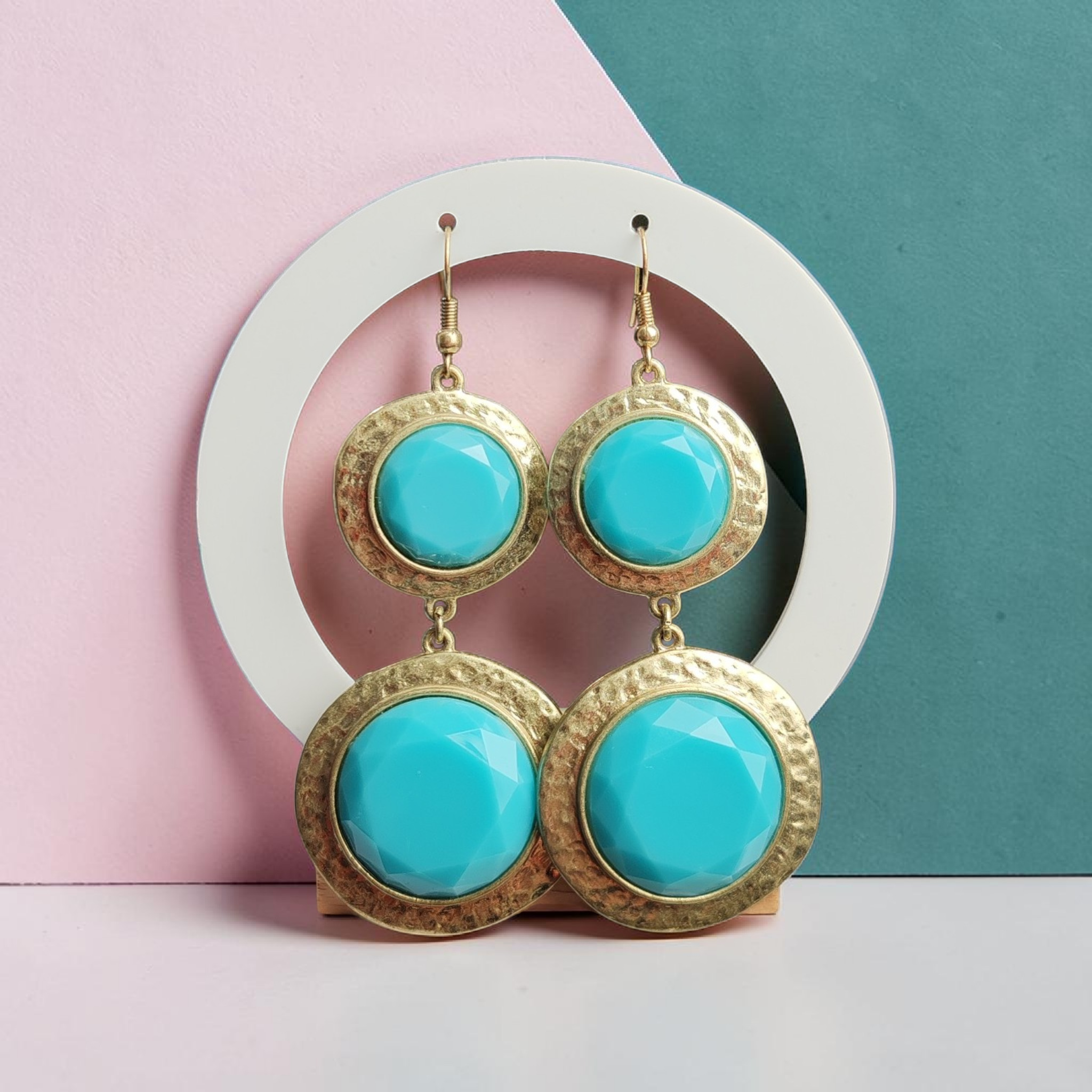 💠 Feltűnő türkiz köves fülbevaló aranyszínű kerettel.