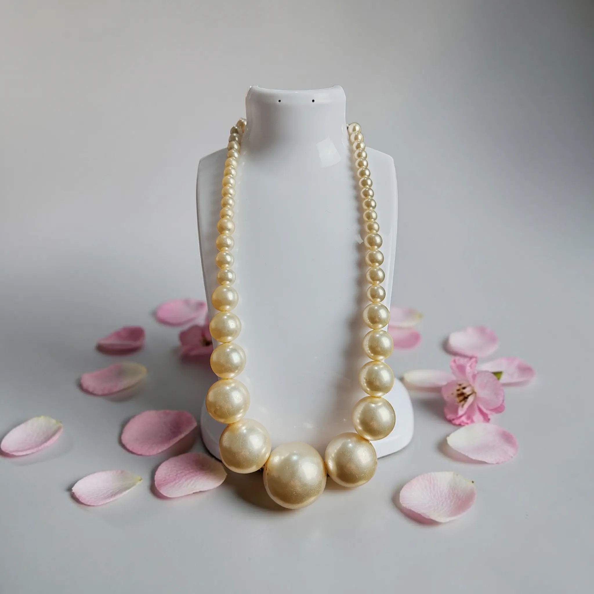 Bézs gyöngyös bizsu nyaklánc nagy méretű gyöngyökkel