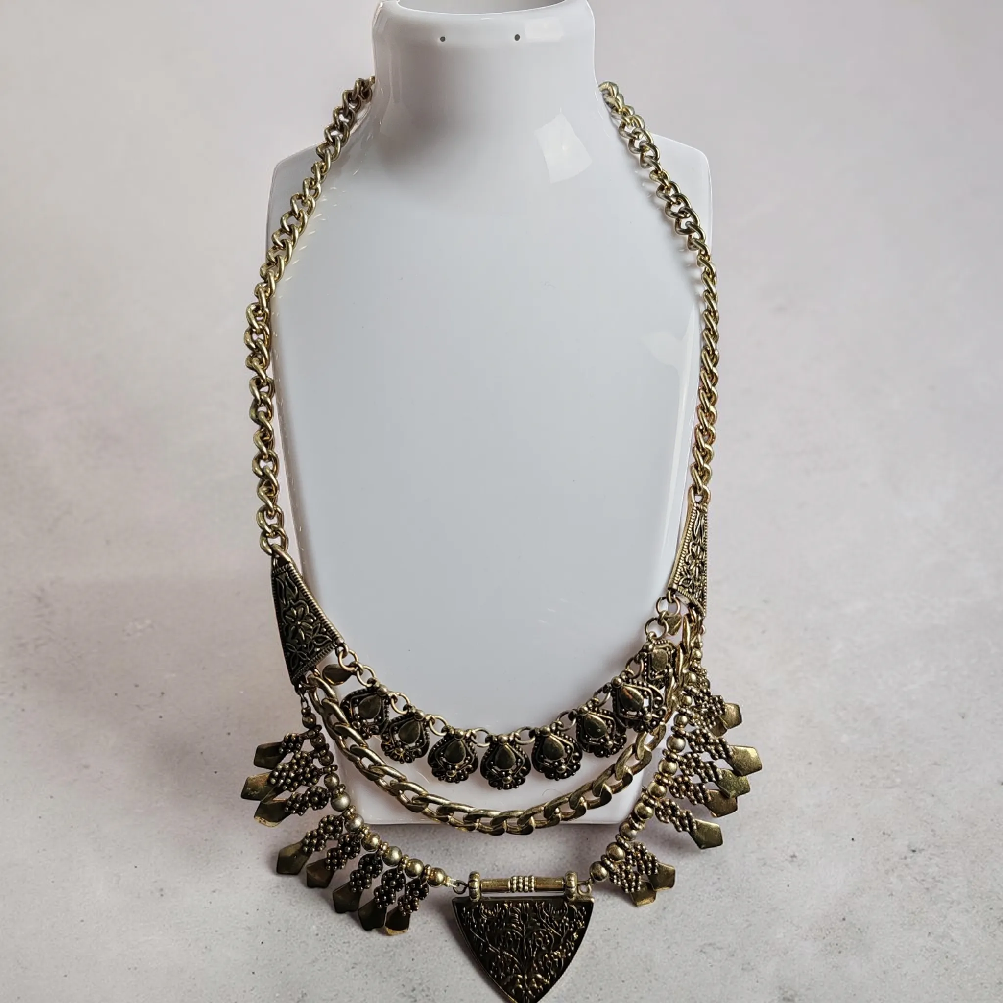🟤 Karakteres, réteges bizsu nyaklánc teljes bronz színben, gazdag díszítéssel.
