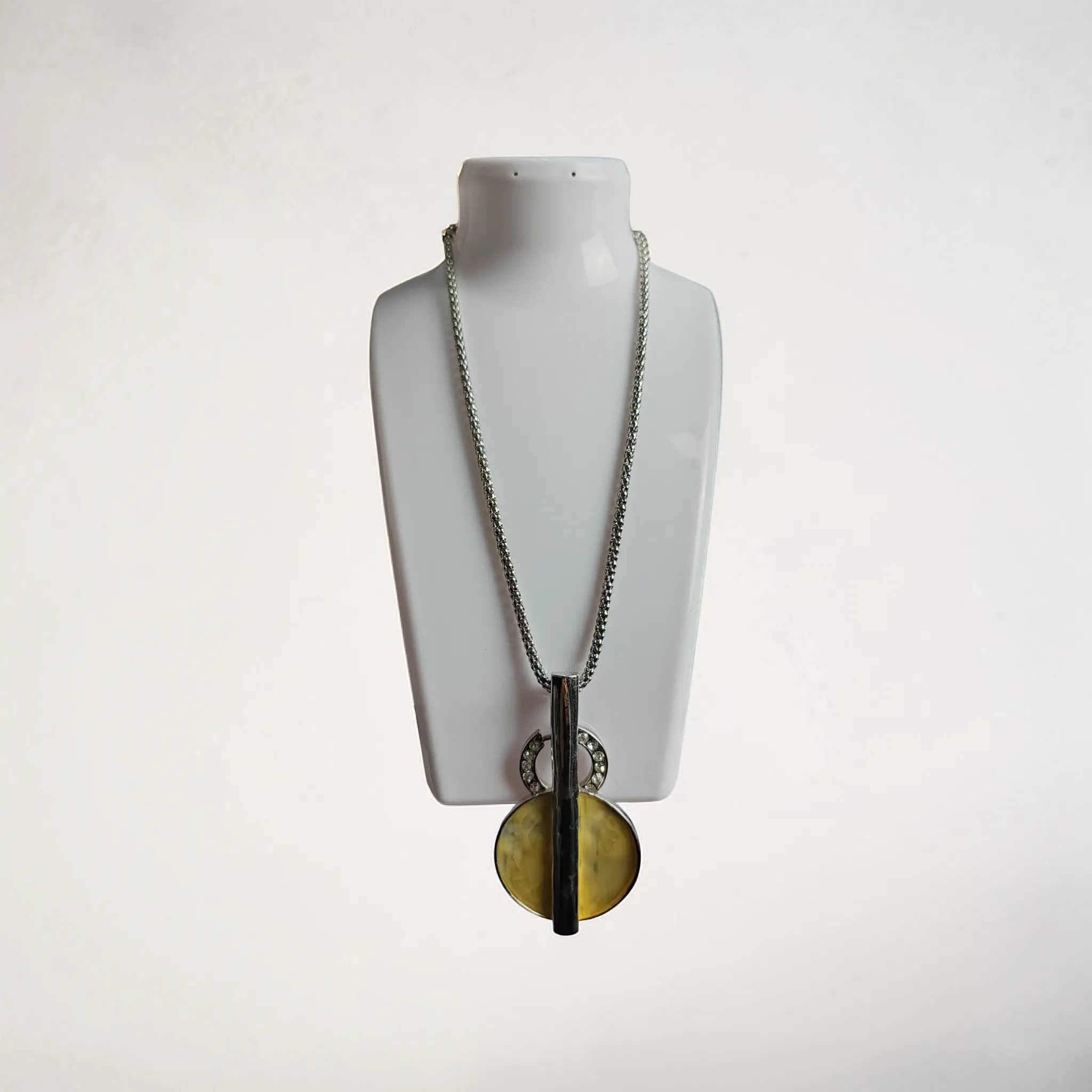 🟡 Letisztult bizsu nyaklánc ezüst lánccal és nagy, gyanta hatású sárga medállal.