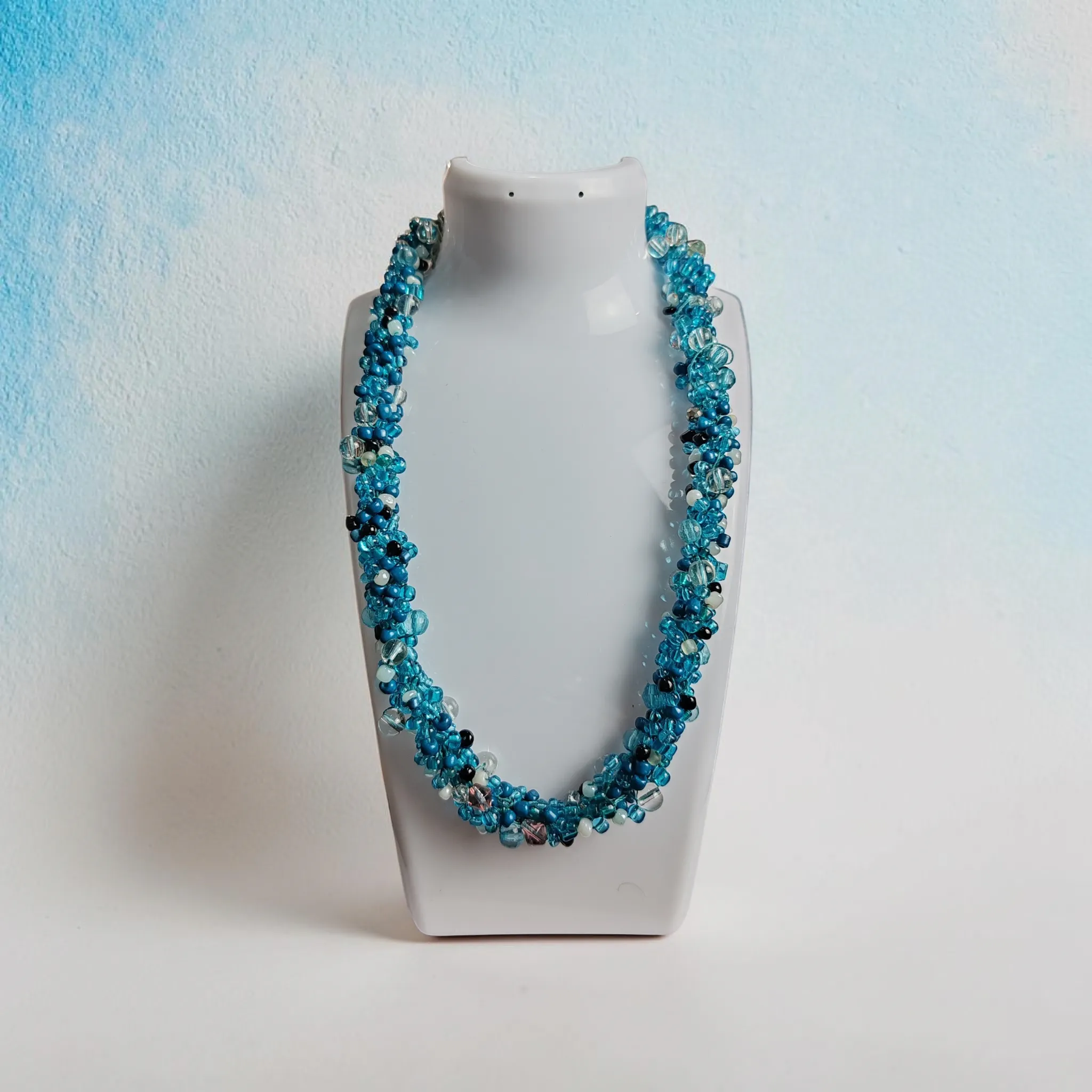 🔵 Friss hatású, türkiz-kék árnyalatú gyöngyökből készült nyaklánc, könnyed, mégis látványos megjelenéssel.